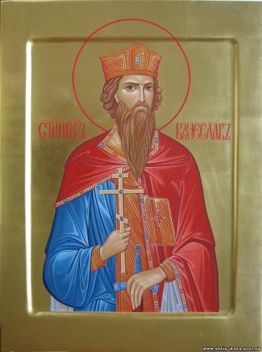 Святой благоверный князь Вячеслав Чешский был внуком святой мученицы княгини Людмилы (память 16 сентября) и был воспитан ею в глубоком благочестии. Он начал княжить 18-ти лет после смерти своего отца князя Вратислава (+ 920). Несмотря на молодые годы, он управлял мудро и справедливо и очень заботился о христианском просвещении народа. Святой князь был широко образованным человеком, изучил латинский и греческий языки. Святой Вячеслав был миролюбив, строил и украшал церкви, соорудил в столице Чехии Праге великолепный храм во имя святого Вита и почитал духовенство. Завистливые вельможи решили погубить святого и стали сначала восстанавливать его против матери, а затем подговаривать младшего брата, Болеслава, занять княжеский престол. Болеслав пригласил брата на освящение церкви, а затем просил его задержаться, погостить еще один день. Несмотря на предупреждения слуг, святой князь отказался верить в заговор и предал свою жизнь в волю Божию. Когда на следующий день, 28 сентября 935 года, благоверный Вячеслав шел к утрени, он был злодейски убит в дверях церкви родным братом и его слугами. Тело его было изрублено и брошено без погребения.